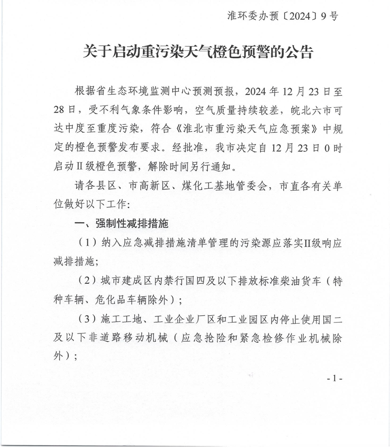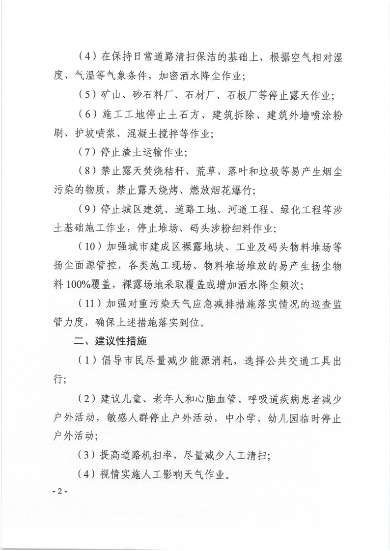 重污染天气应急预案制定与公布、大气污染防治措施 |