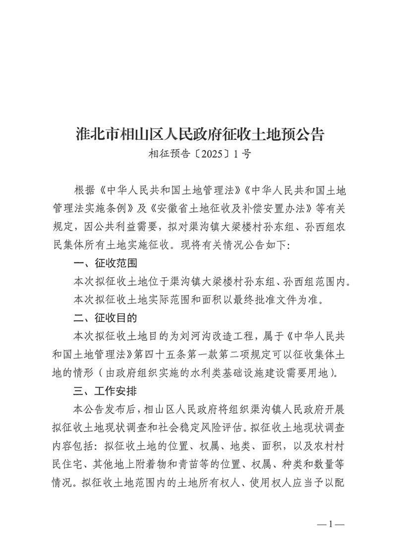 刘河沟改造工程征收土地预公告