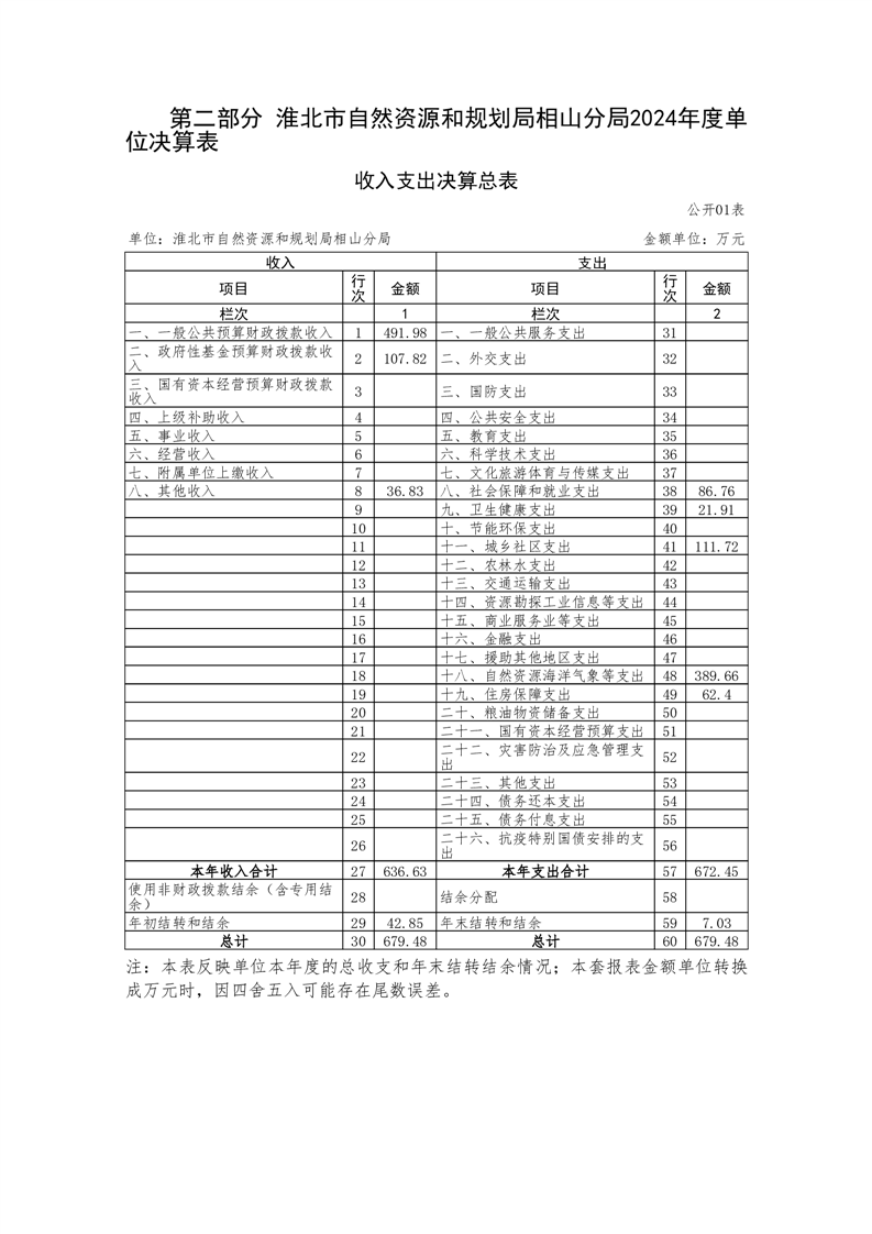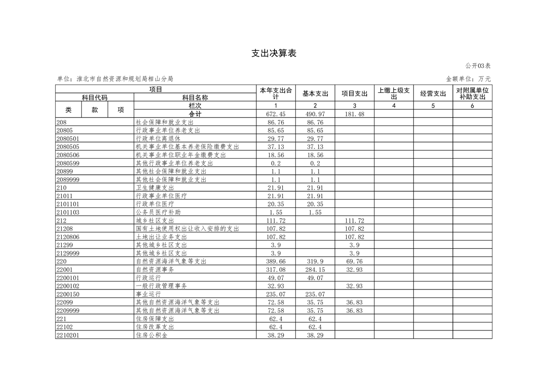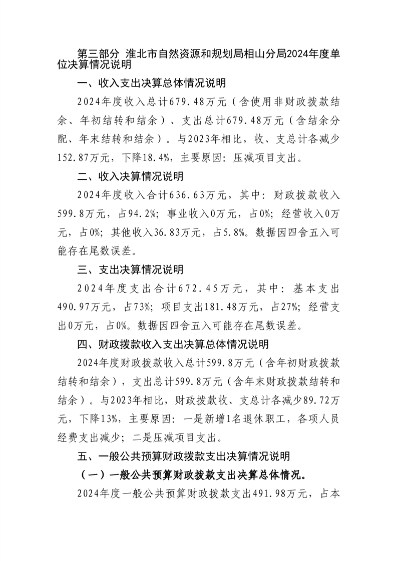 淮北市自然资源和规划局相山分局2024年度单位决算公开