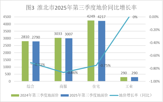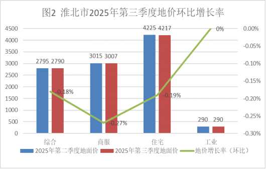 表2 淮北市2025年第三季度各用途地价增长率一览表