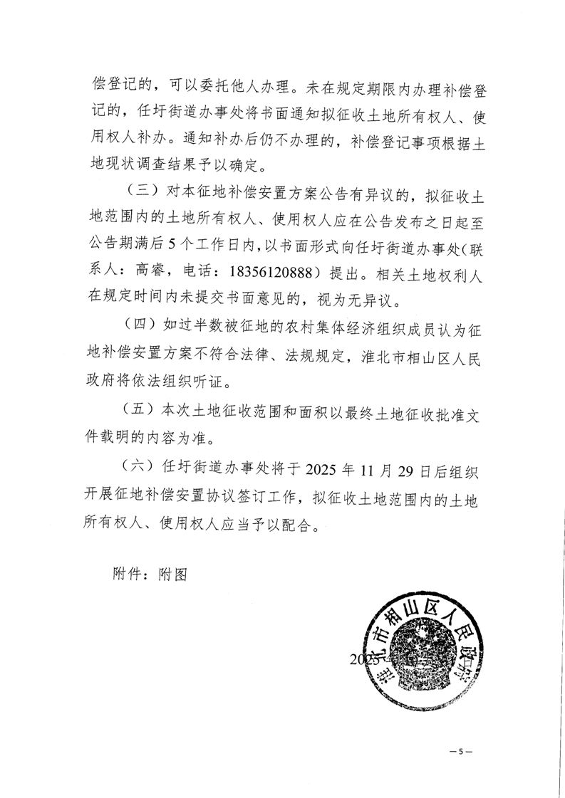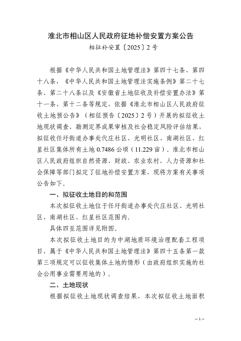 淮北市相山区2025年第6批次城镇建设用征地补偿安置方案公告