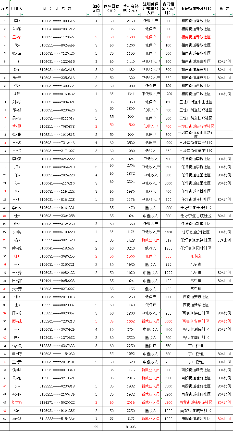 相山区公共租赁住房租赁补贴2025年2季度花名册