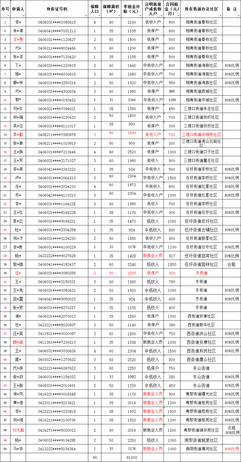 相山区公共租赁住房租赁补贴2025年3季度花名册