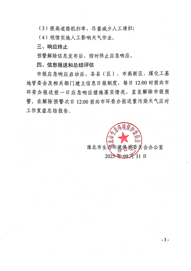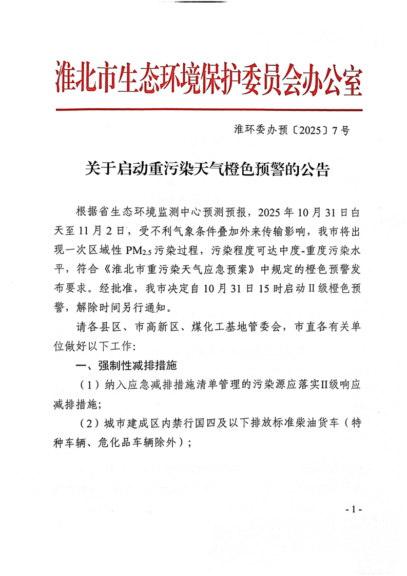 淮环委办预〔2025〕7号关于启动重污染天气橙色预警的公告