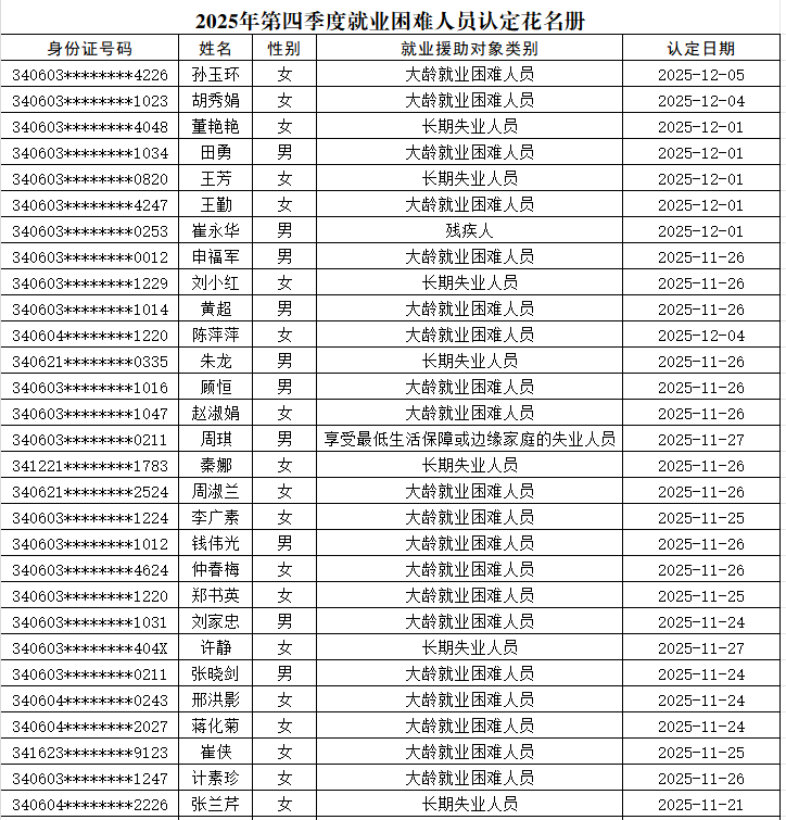 2025年第四季度就业困难人员认定