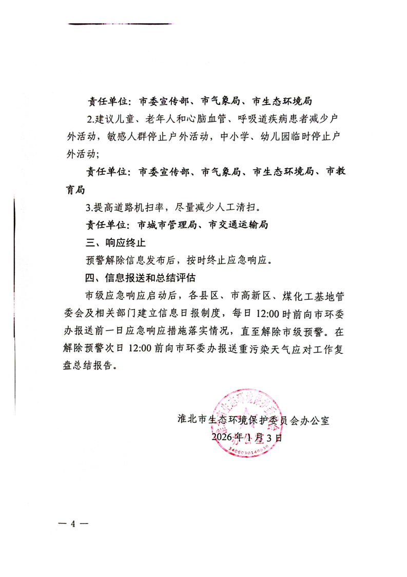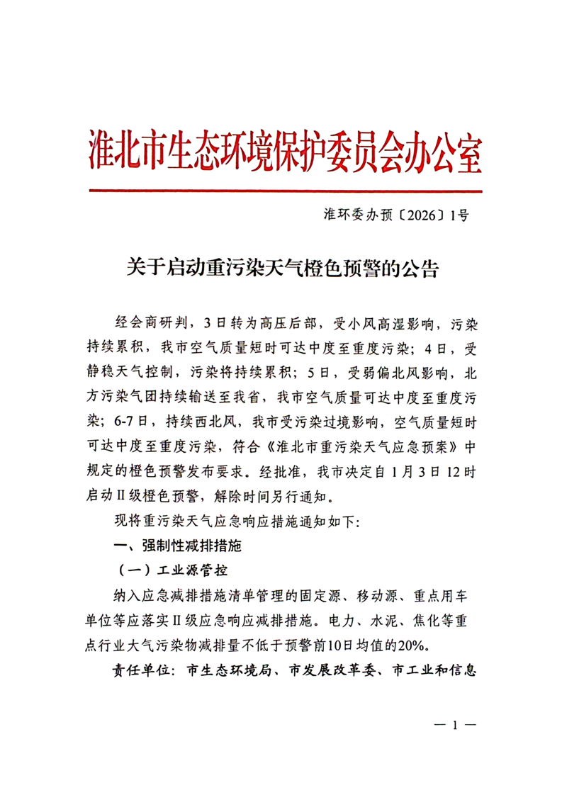 淮环委办预〔2026〕1号关于启动重污染天气橙色预警的公告