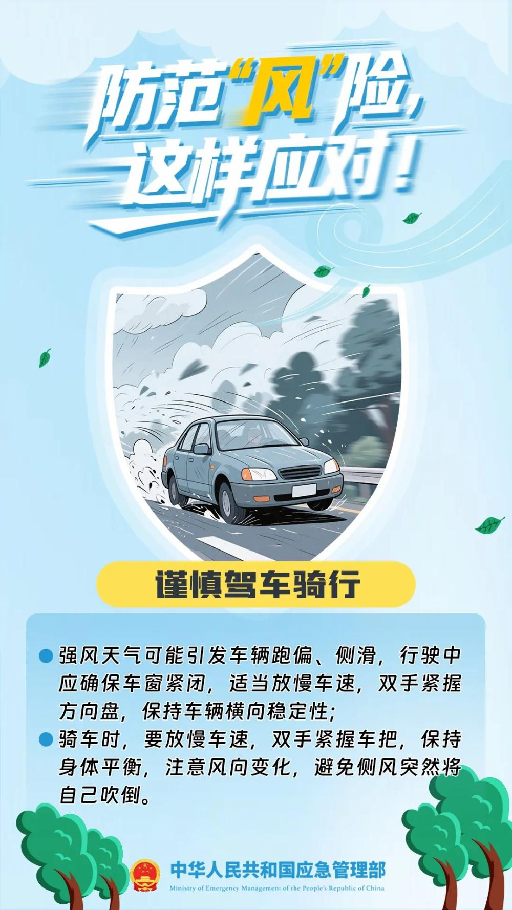 春季大风天气频繁!路面风大、视线受阻,极易影响车辆行驶稳定性。伴随高空坠物、树木倒伏等风险,稍有疏忽就可能引发意外事故。大风天气,一定要提高安全防范意识,警惕这些看不见的“风”险!