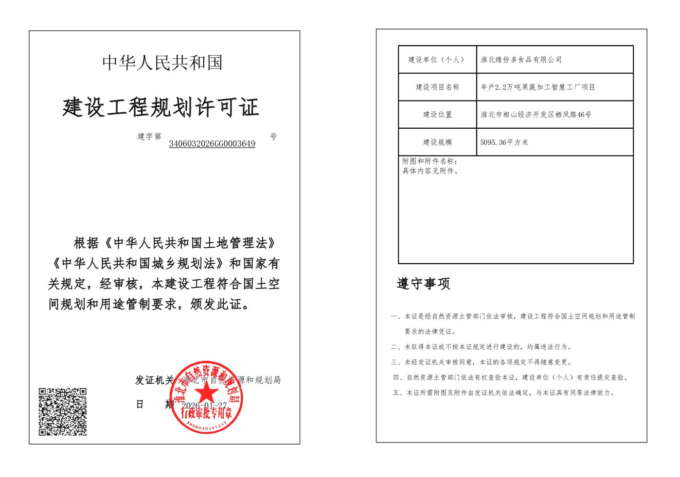 年产2.2万吨果蔬加工智慧工厂项目建设工程规划许可证批后公告