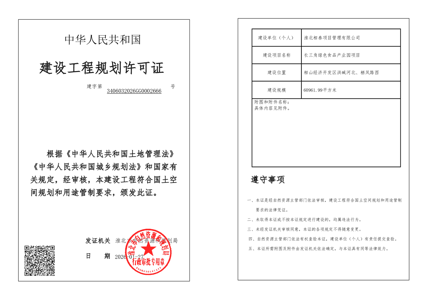 长三角绿色食品产业园项目建设工程规划许可证批后公告