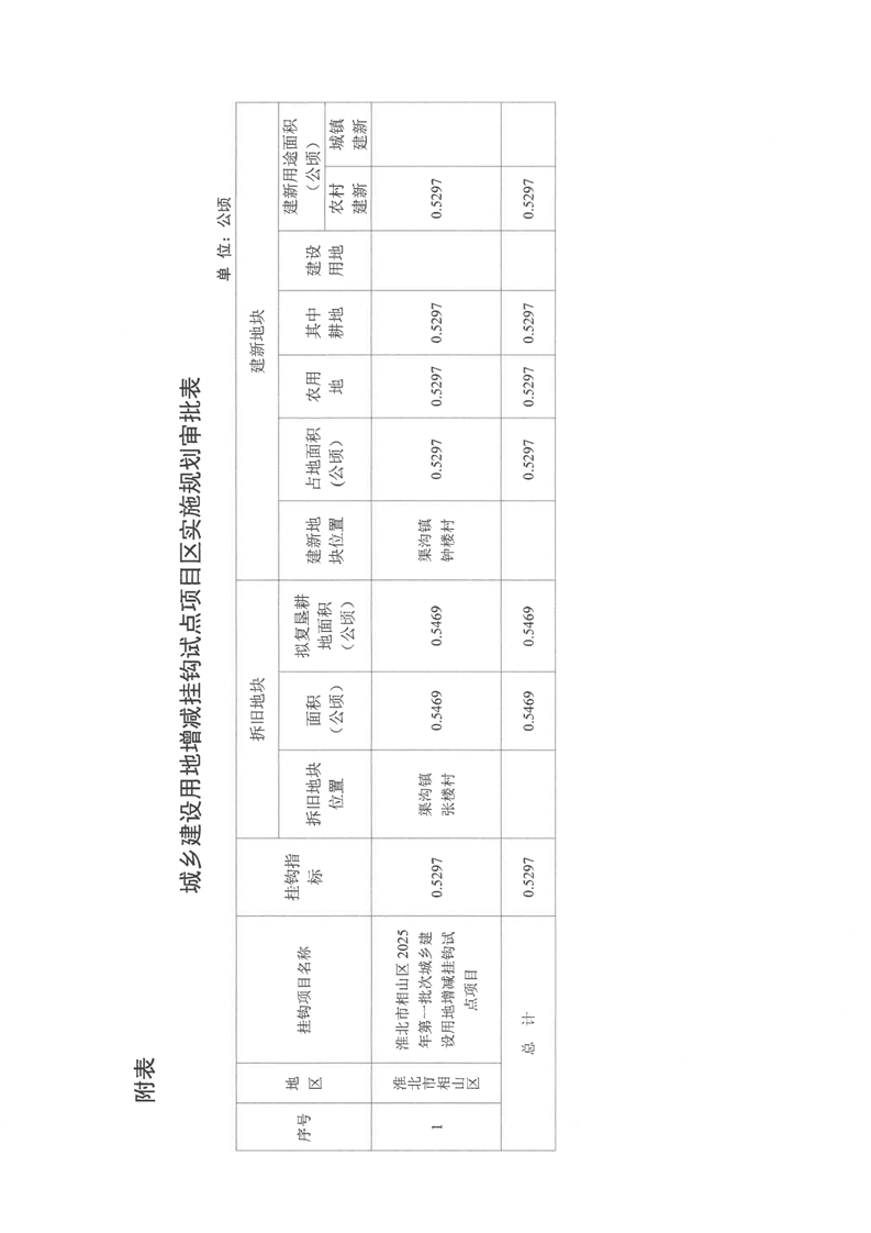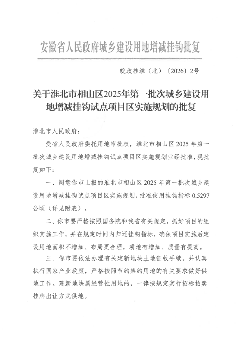 淮北市相山区2025年第一批次城乡建设用地增减挂钩试点项目区实施规划的批复