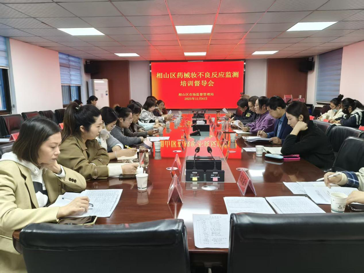为进一步规范相山区药械妆不良反应监测工作,近日,相山区市场监管局召集全区一级医疗机构举行全区不良反应监测培训督导会,分析了相山区药械妆不良反应监测工作现状,提出了具体工作要求,对不良反应监测工作上报流程进行了培训。