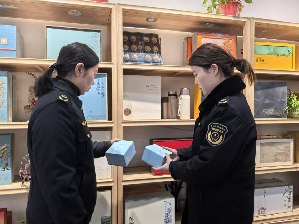 本次检查以茶叶专卖店、商超专柜等经营主体为重点,重点核查“黄山毛峰”“六安瓜片”等知名地理标志春茶产品是否存在未经许可擅自使用、超范围使用等侵权行为,并严查虚假标注产地、年份、等级以及夸大宣传等违法行为。同时督促经营者严格履行索证索票义务,确保茶叶来源可溯、质量可控。