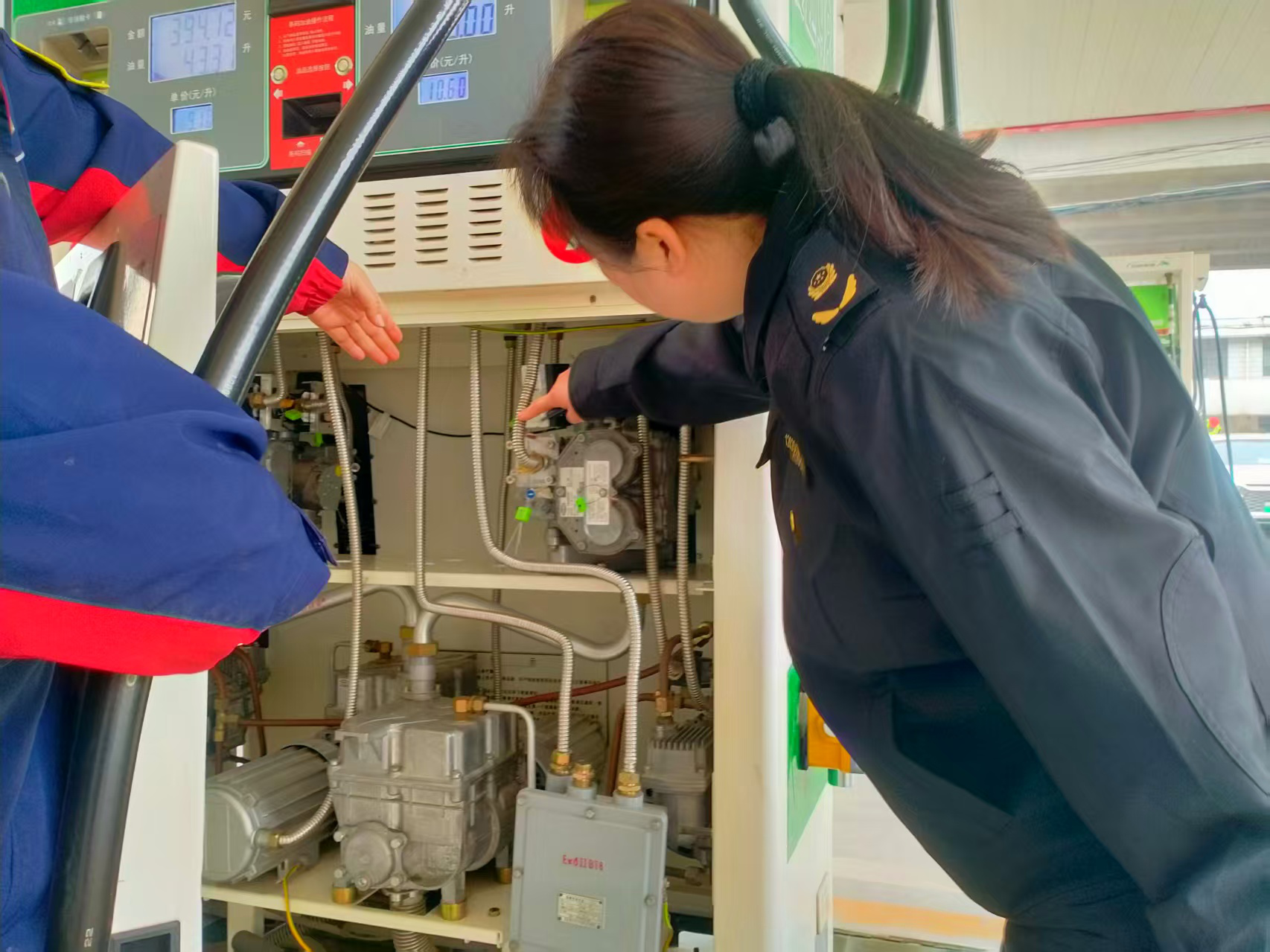 检查中,执法人员重点核查加油机是否在强制检定有效期内、铅封是否完好无损,严查擅自改装拆装机具、利用计量芯片作弊等违法违规行为。同时,仔细查验油品进货票据、供货主体资质及质量检验合格报告,严格溯源把关,核实油品来源合法合规性。此外,现场督导加油站压紧压实安全生产主体责任,检查安全管理制度、应急处置预案建立健全情况及从业人员安全培训台账记录。