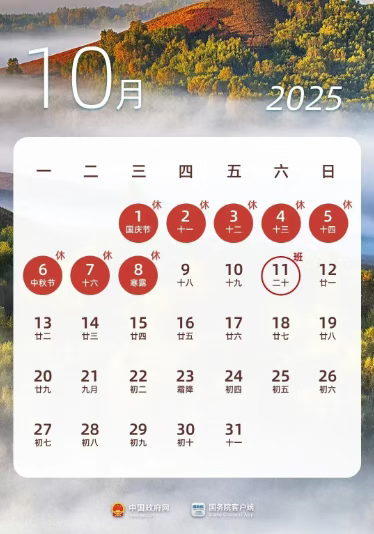 国庆节逢中秋节合并放假8天