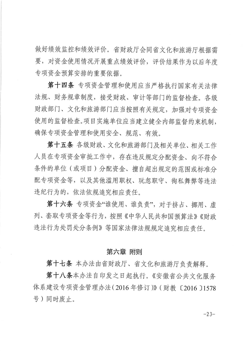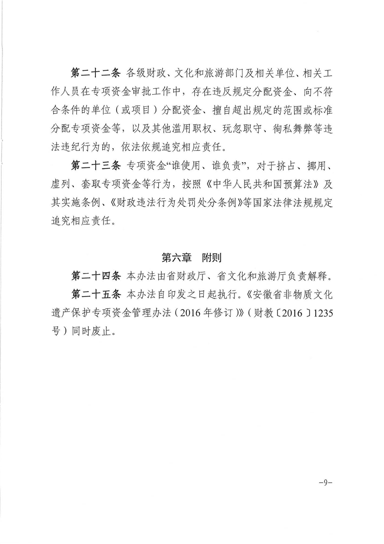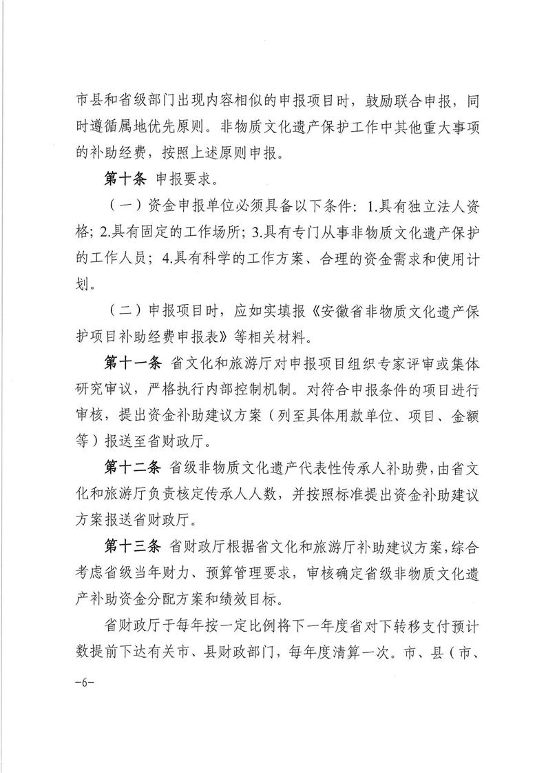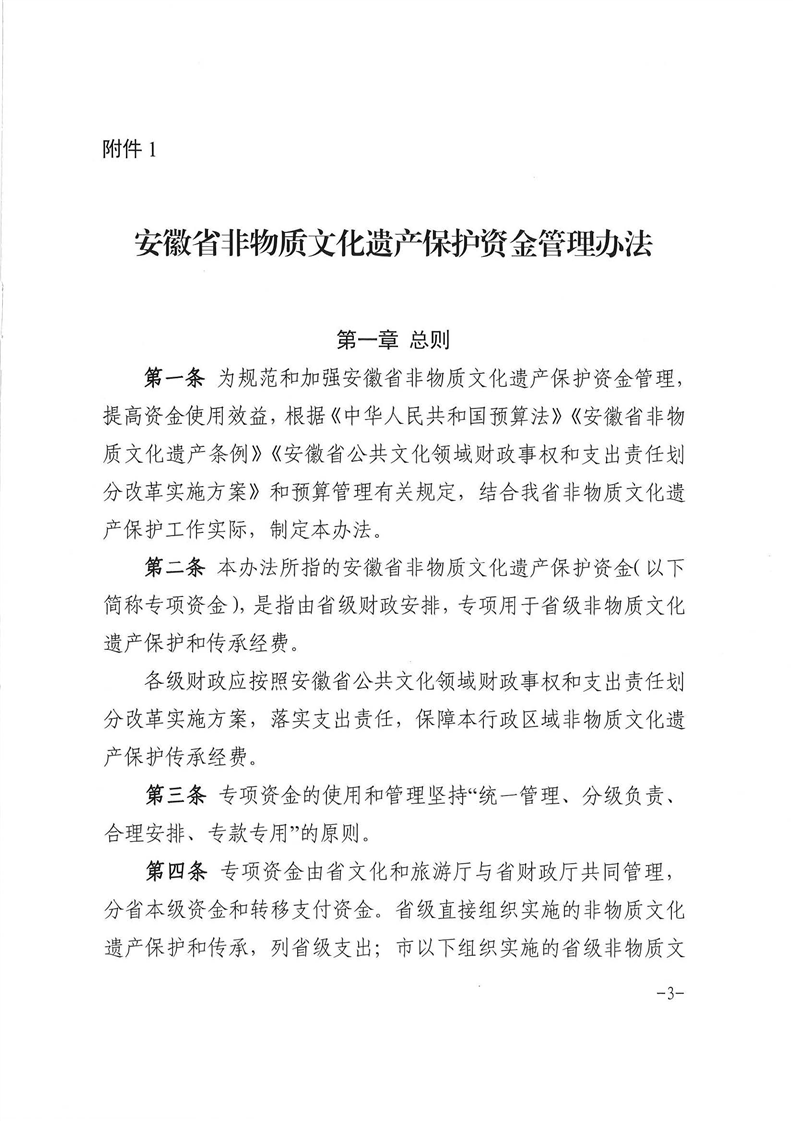 安徽省财政厅安徽省文化和旅游厅关于印发《安徽省非物质文化遗产保护资金管理办法》等3个资金管理办法的通知