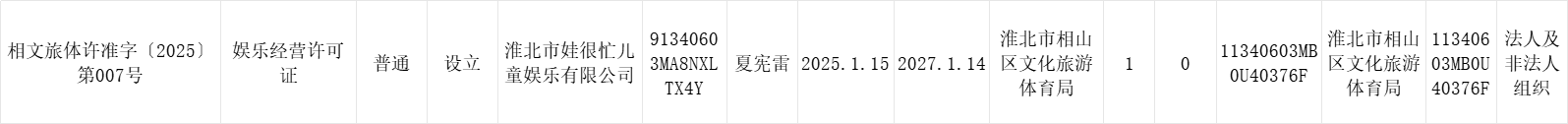 淮北市娃很忙儿童娱乐有限公司娱乐经营许可证设立