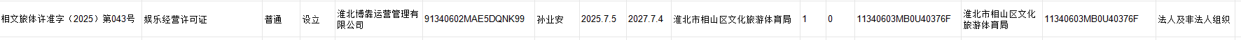 淮北博犇运营管理有限公司娱乐经营许可证设立
