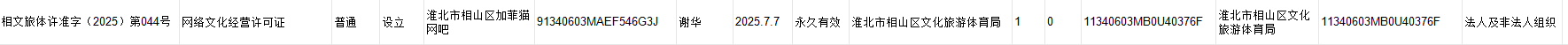 淮北市相山区加菲猫网吧网络文化经营许可证设立