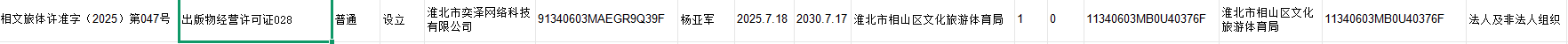 淮北市弈泽网络科技有限公司出版物经营许可证