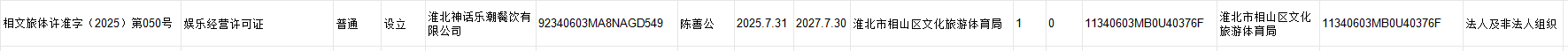 淮北神话乐潮餐饮有限公司娱乐经营许可证设立