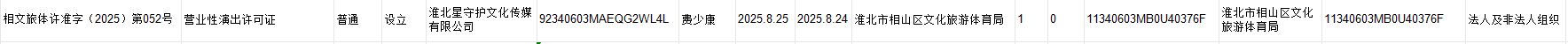 淮北星守文化传媒有限公司营业性演出许可证设立