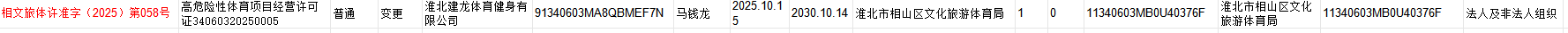 淮北建龙体育健身有限公司高危性体育项目经营许可证变更