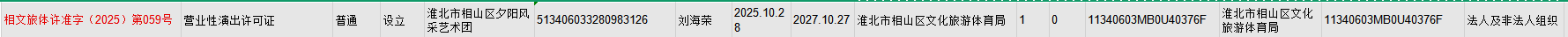 淮北市相山区夕阳风采艺术团营业性演出许可证设立