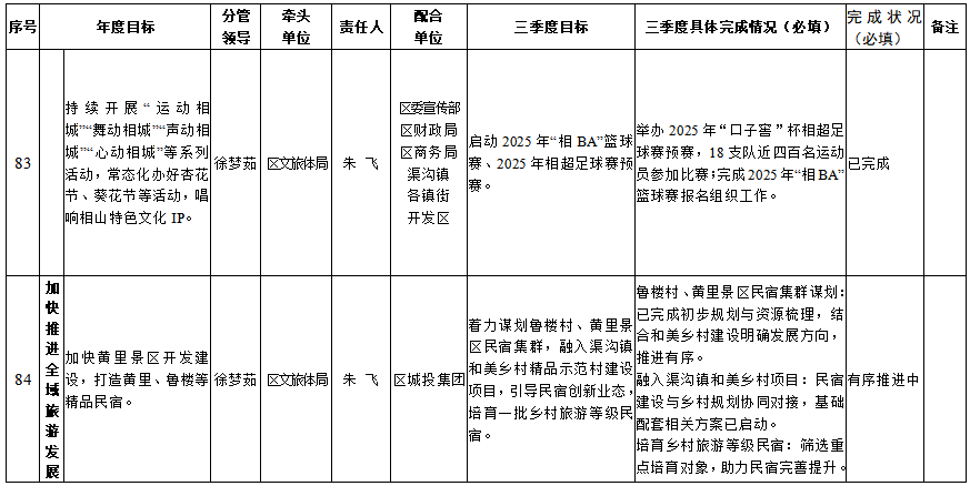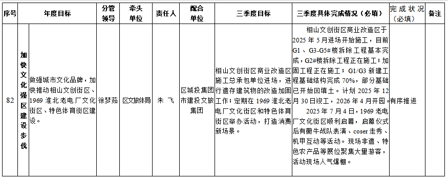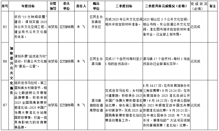 相山区文旅体局2025年政府工作报告重点工作第三季度执行和落实情况