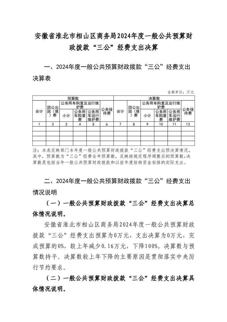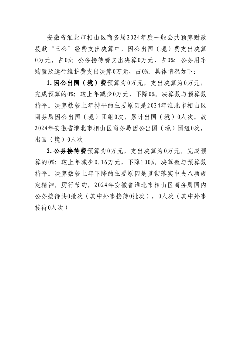 淮北市相山区商务局2024年一般公共预算“三公”经费支出决算