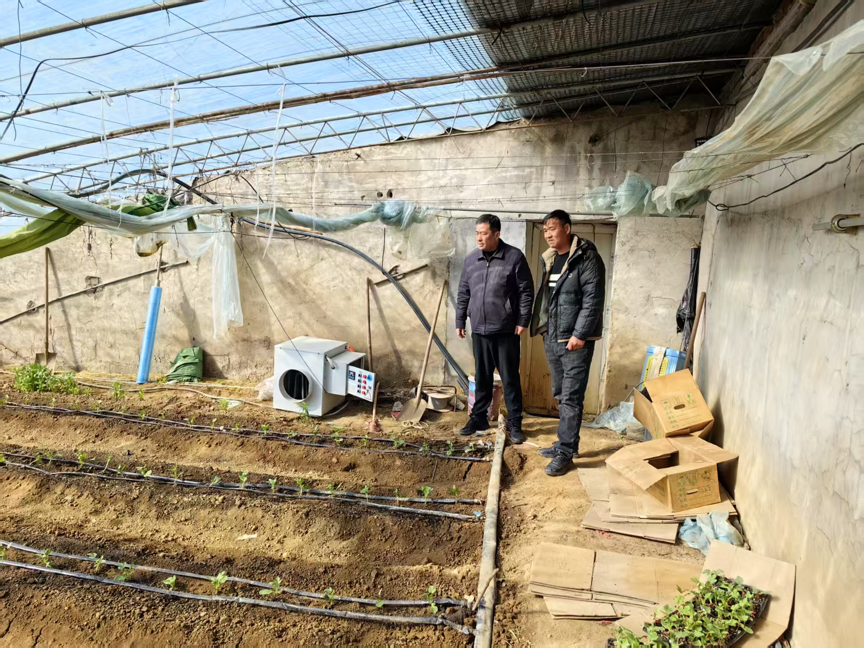 牛煦同志下乡检查设施农业发展情况
