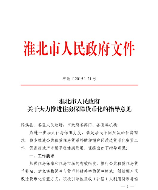 关于淮北市保障房的建设及分配下放到县区政府的情况说明