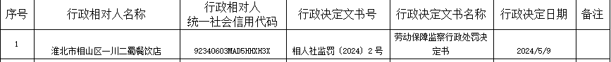 2024年相山区人社局第二批行政处罚