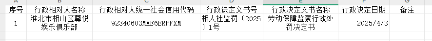 2025年相山区人社局第一批行政处罚