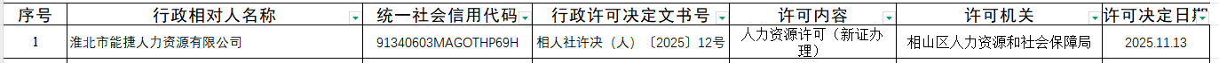 淮北市能捷人力资源有限公司人力资源行政许可公示