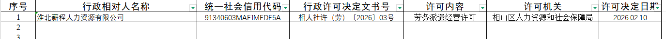 淮北薪程人力资源有限公司劳务派遣行政许可公示