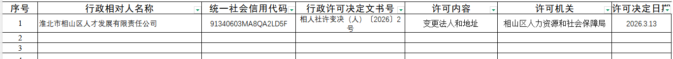 淮北市相山区人才发展有限责任公司人力资源行政许可公示
