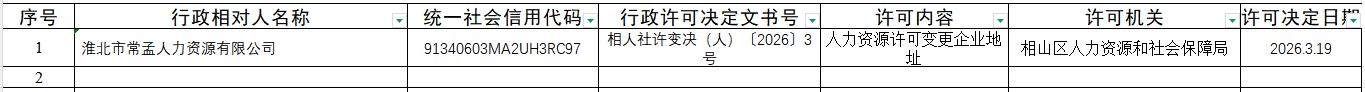 淮北市常孟人力资源有限公司人力资源行政许可公示