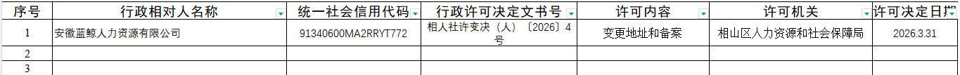 安徽蓝鲸人力资源有限公司人力资源行政许可公示