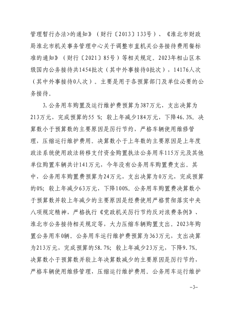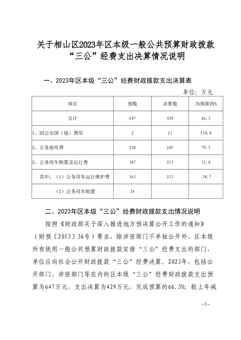 相山区2023年区本级一般公共预算财政拨款“三公”经费支出决算情况说明