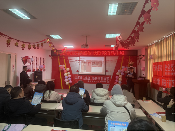 春节假期前后,人员流动大、群众理财消费需求集中,非法集资、非法放贷等非法金融活动易滋生,严重危害群众财产安全和金融秩序。为切实守护辖区群众财产安全,防范化解春节期间非法集资风险,让居民度过一个平安、祥和、舒心的新春佳节,2月11号上午,相山区财政局联合相南街道中城社区、徽商银行相阳支行,在中城社区党群服务中心,开展防范非法金融宣传活动。