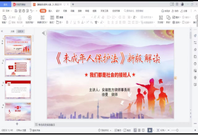 这次培训邀请了中国法学会会员、安徽省优秀女律师徐曼同志,她运用视频课件对两部法律的指导思想、重点章节、亮点部分进行了详细解读,通过不同的案例,深入浅出地分析了《未成年人保护法》的形式变化和新增内容,共同分享了未成年人保护的职责范围和权限,同时,对日常工作提出了许多宝贵意见和建议。指出,儿童专干是贴近儿童、了解儿童、心系儿童的前沿工作者,是信息收集排查、意外伤害防范、定期入户随访、社会心理支持以及儿童保障资源的直接责任者和有效提供者,是打通儿童福利与保护体系的最后一公里的桥梁,在工作中要善学习、多思考、勤实践、增强自身履职能力,做到学有所得、学有所获,学以致用,把所学知识运用到儿童保护工作中。