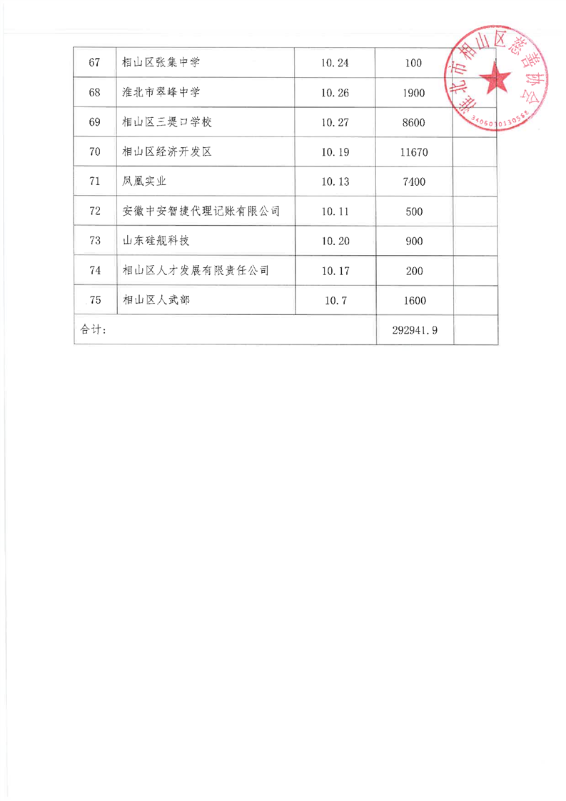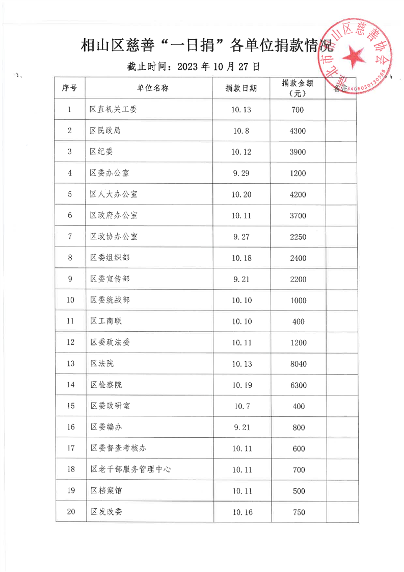 相山区慈善“一日捐”各单位捐款情况公示(第二期)