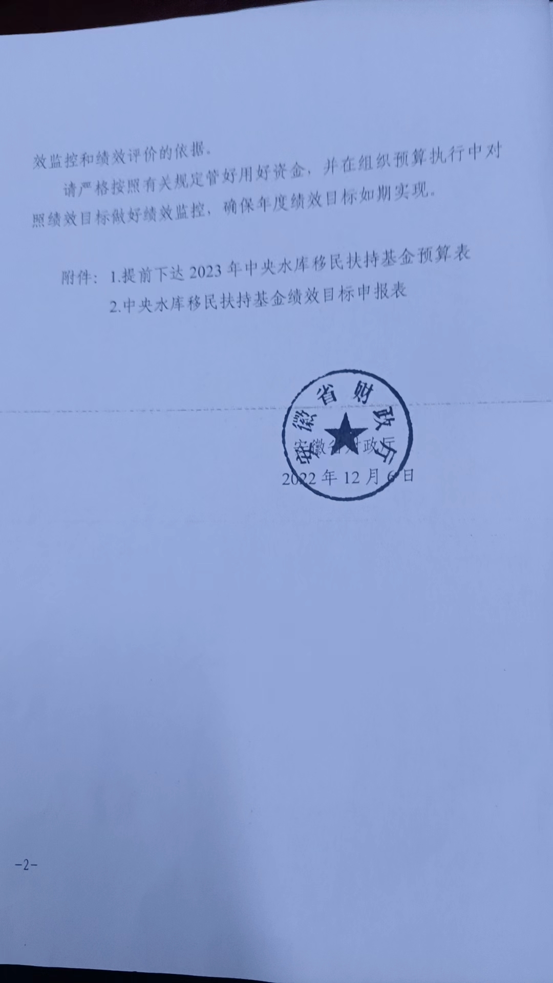 根据本区工作实际,我区2023年大中型水库移民后期扶持共2人,每人600元,共计1200元。目前均已全部发放到位。
