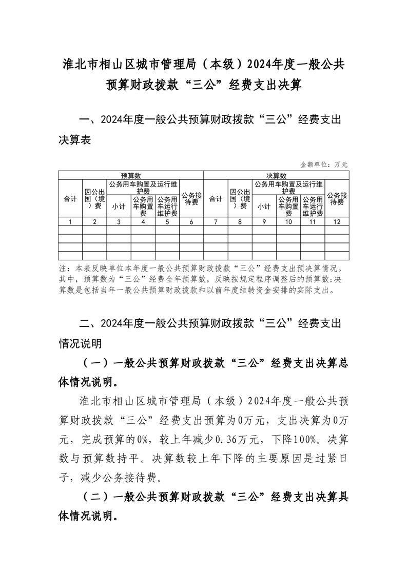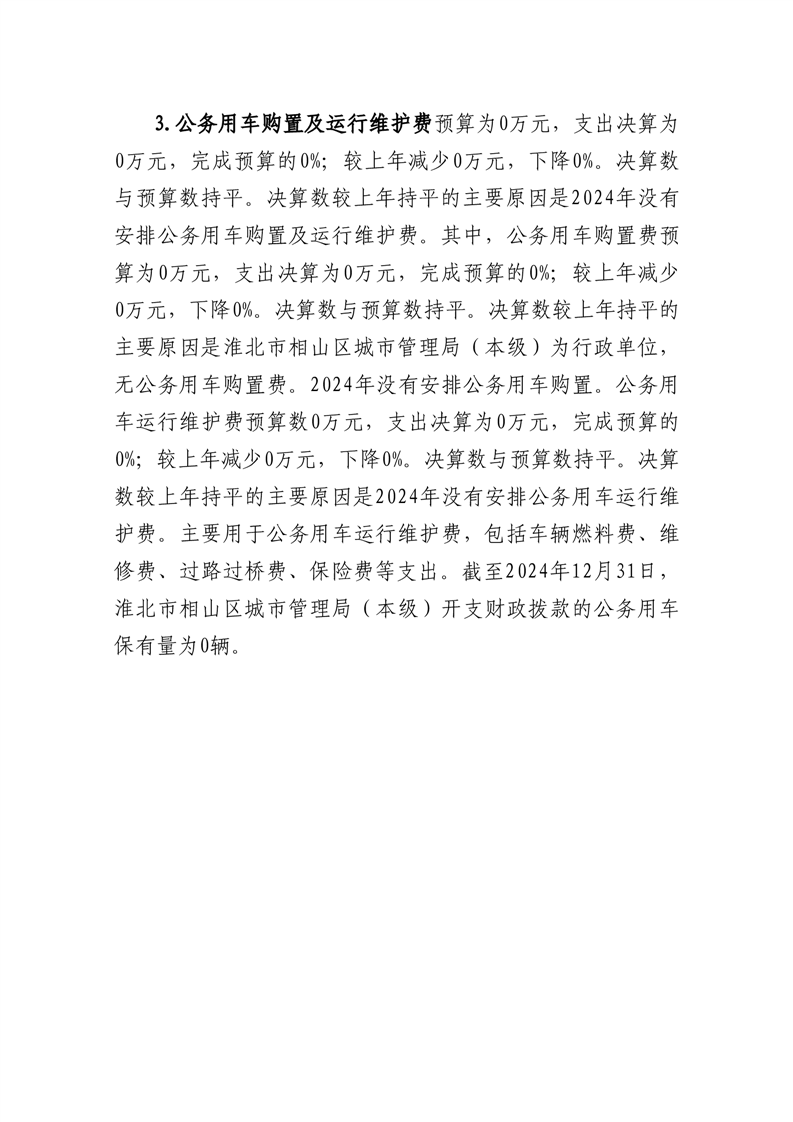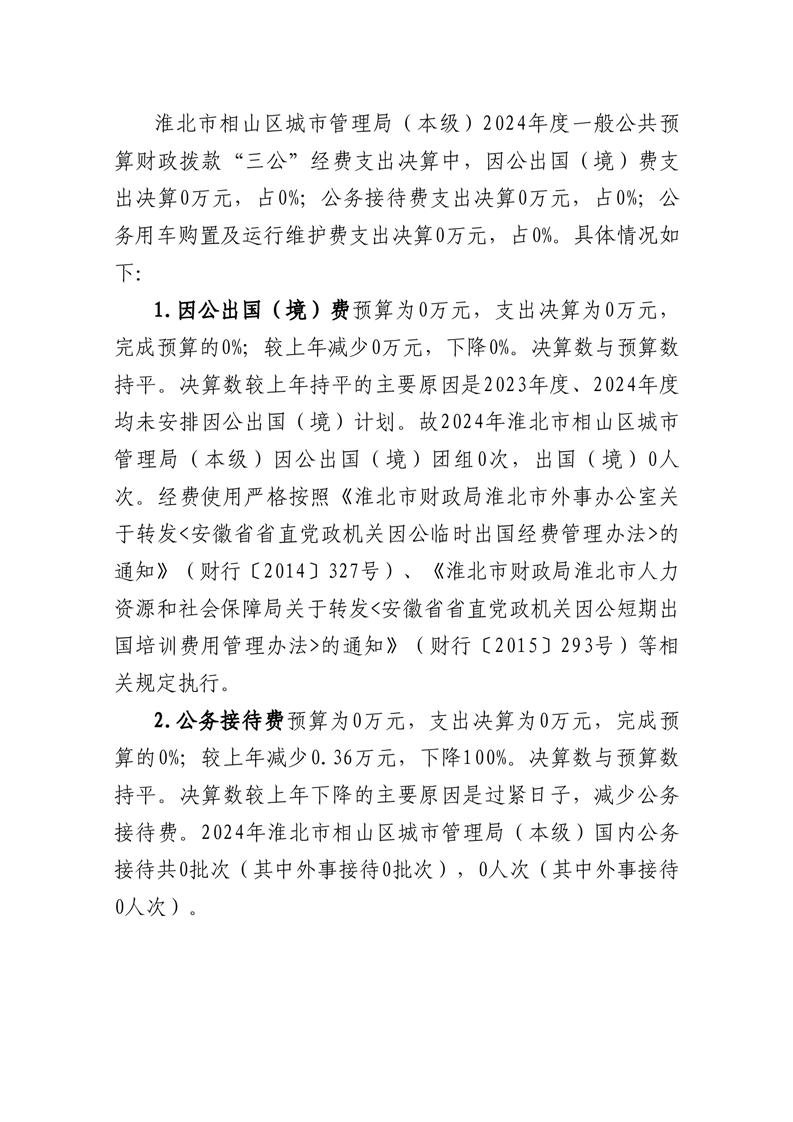 淮北市相山区城市管理局(本级)2024年度一般公共预算财政拨款“三公”经费支出决算