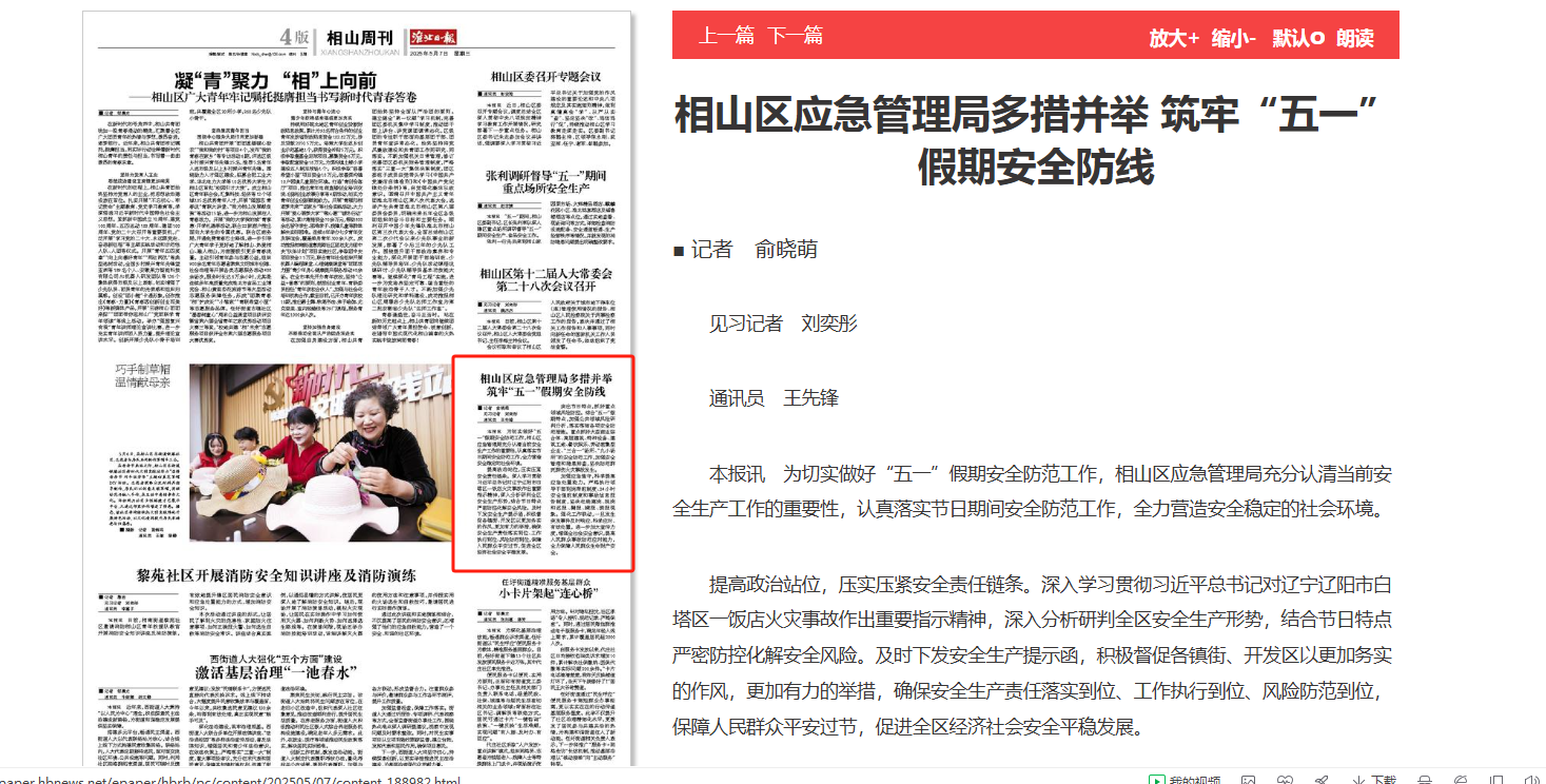 【淮北日报】相山区应急管理局多措并举筑牢“五一”假期安全防线