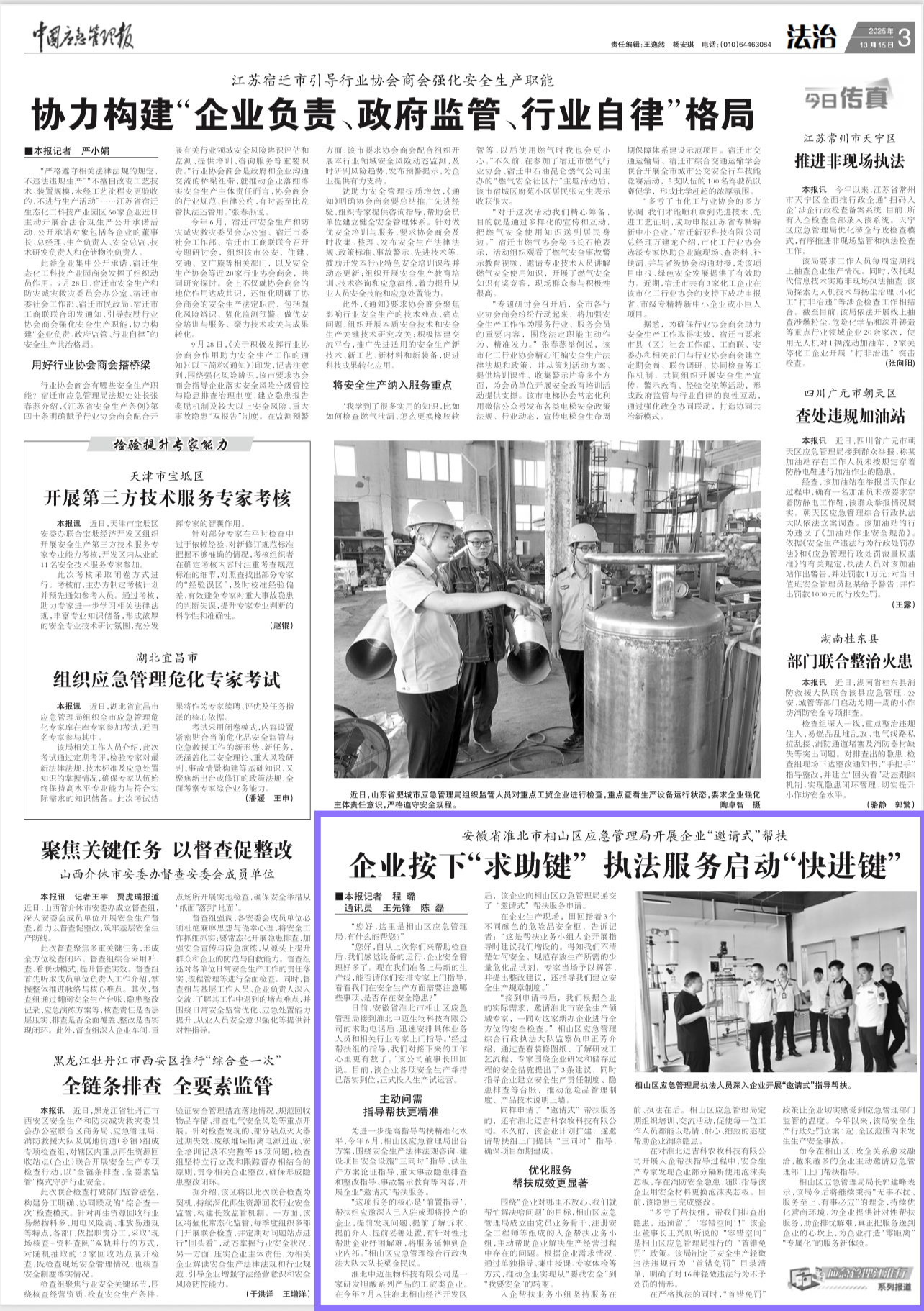 【中国应急管理报】相山区应急管理局开展邀请式执法帮扶工作企业按下“求助键”执法服务启动“快进键”