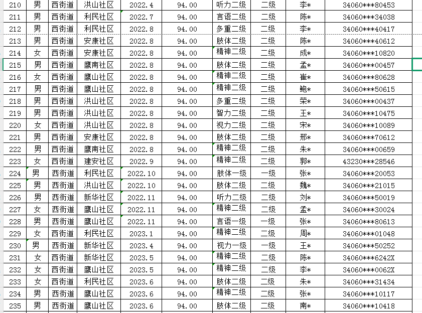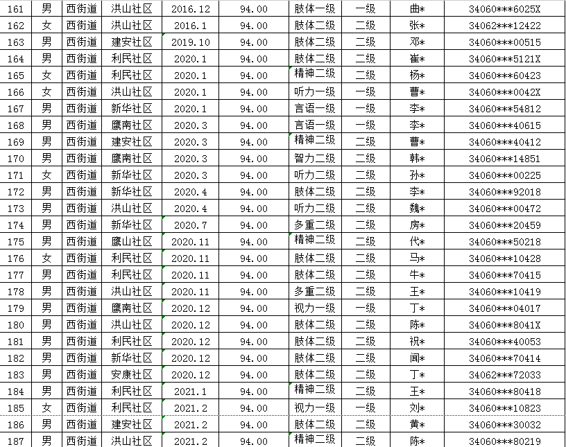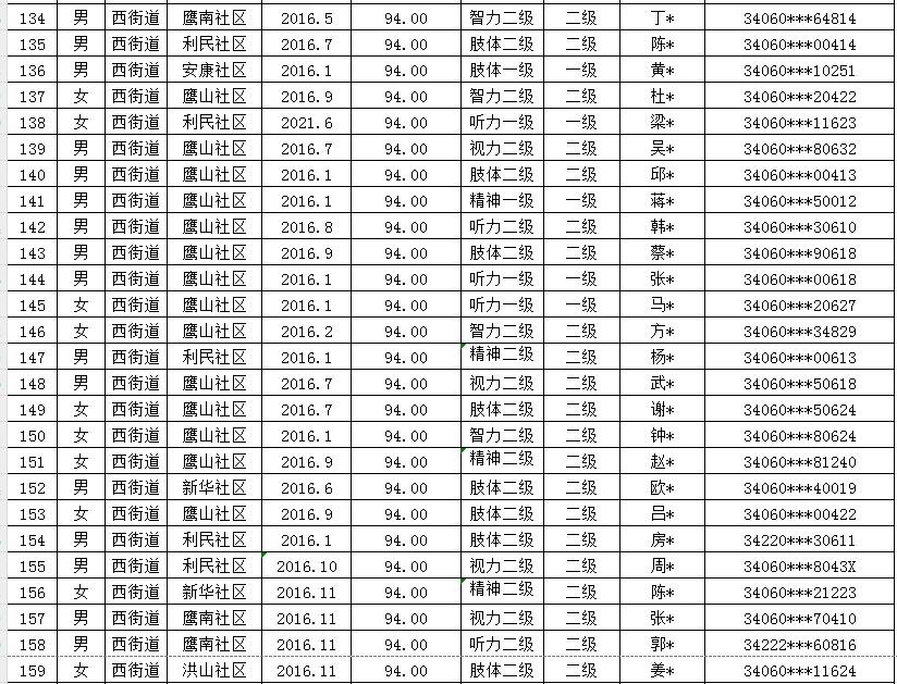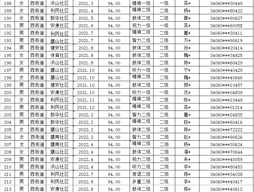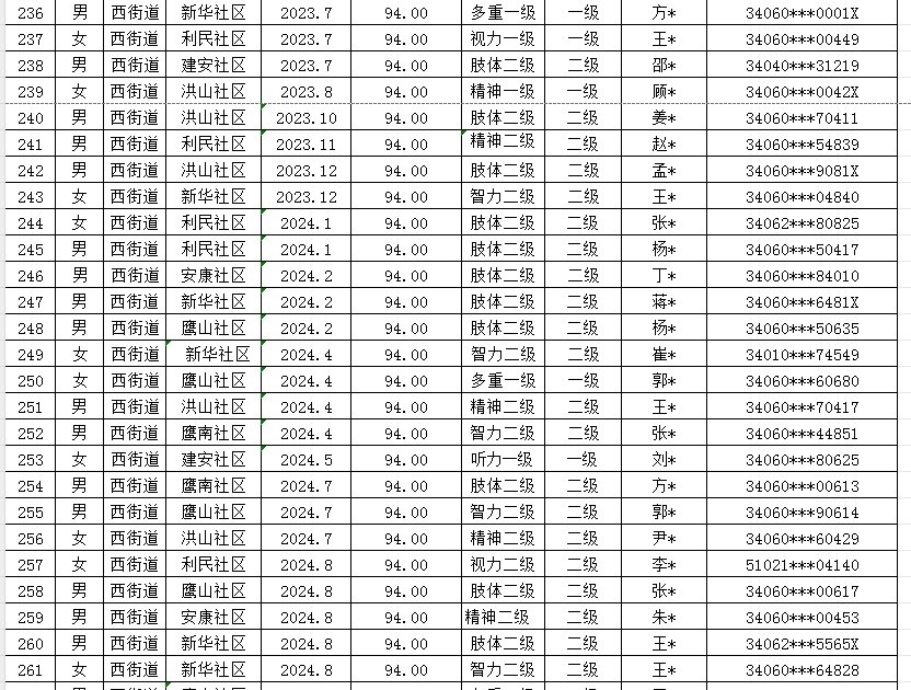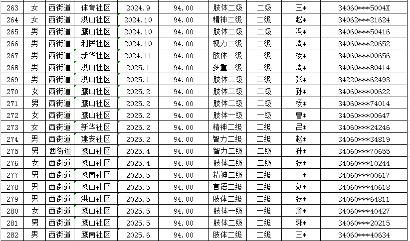 西街道2025年第二季度重度残疾人护理补贴发放汇总表