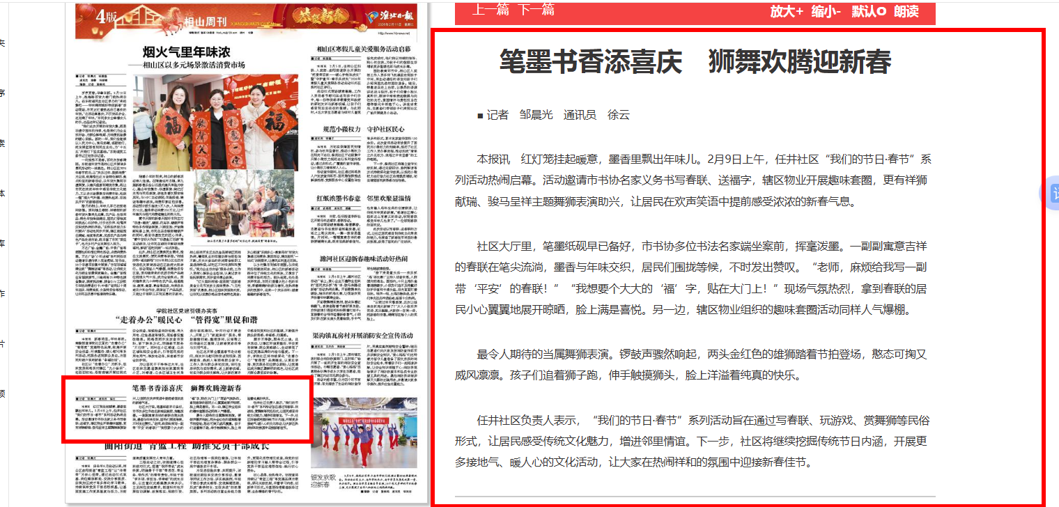 任井社区【笔墨书香添喜庆狮舞欢腾迎新春】