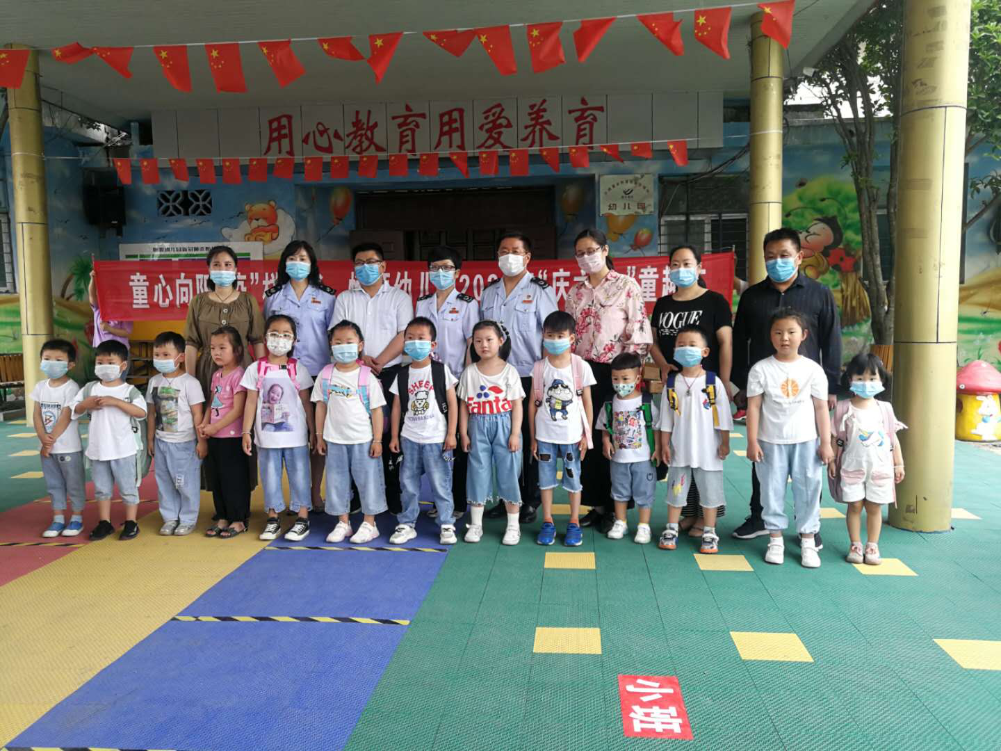 活动中,幼儿园里处处洋溢着节日的氛围,淮北市税务局赵局长和三堤口街道徐书记向孩子们亲切互动,并为孩子们送上了书包、学习用具等礼物,祝福孩子们节日快乐,快乐成长。并鼓励孩子们要珍惜现在美好的生活,从小崇尚美德、践行美德,培养好思想、好品行、好习惯,树立远大的志向和崇高的理想信念,成为对国家和社会有贡献的人。