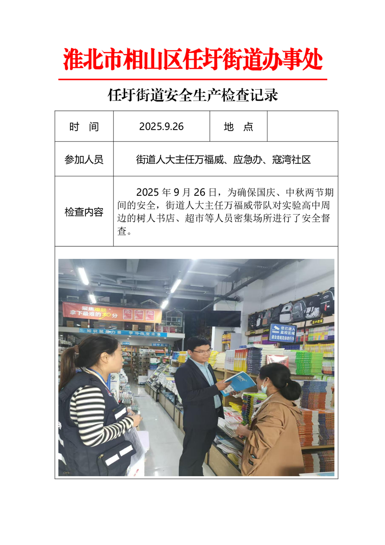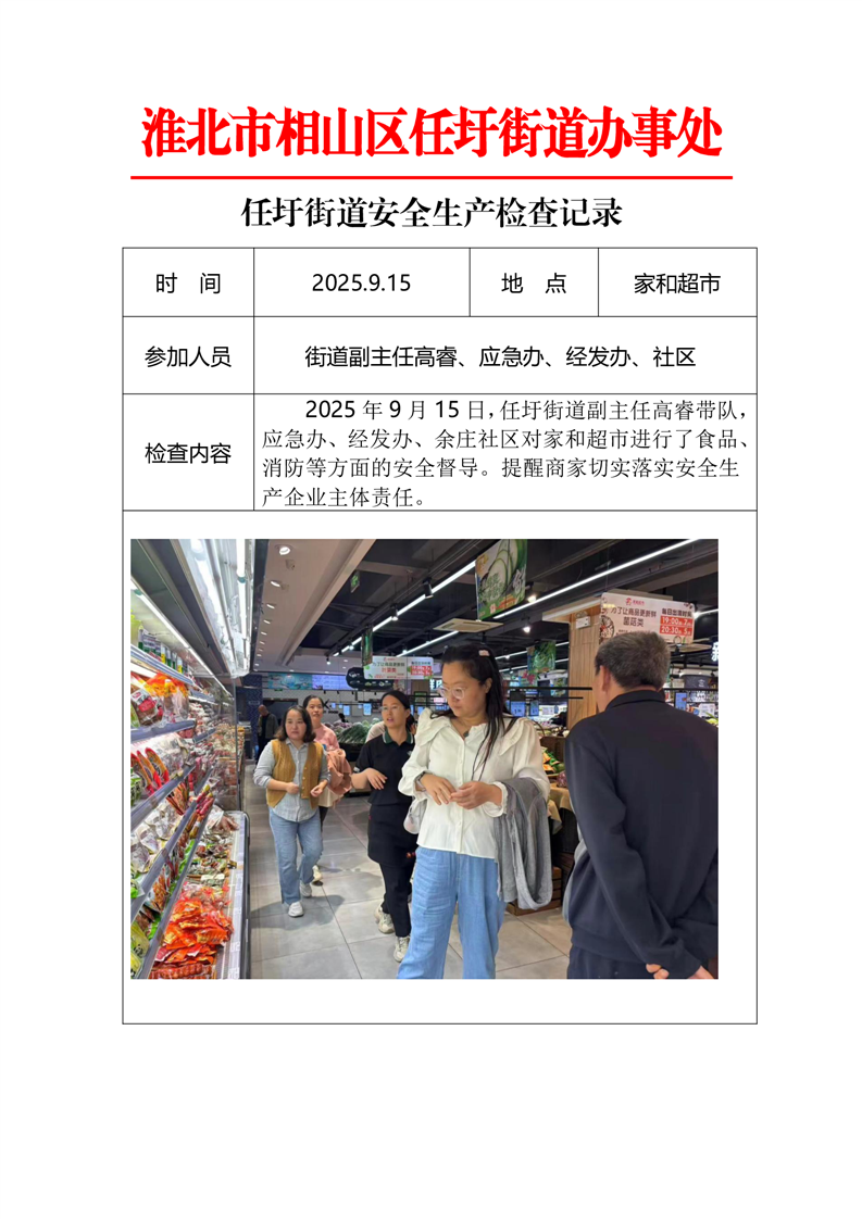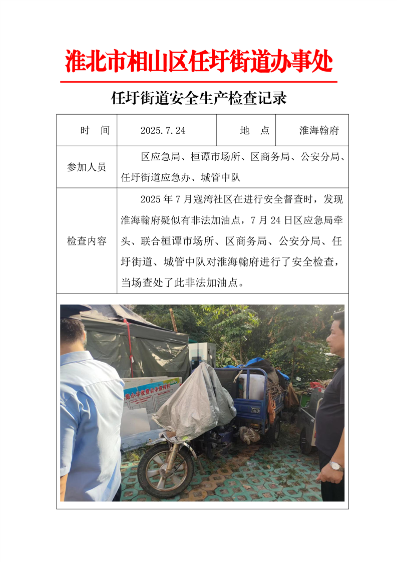 相山区任圩街道2025年第三季度隐患排查工作开展情况